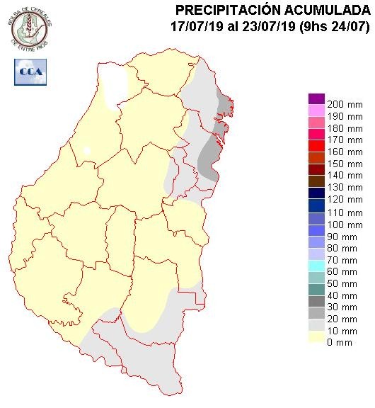 El paso favorable de humedad y el avance de air más frío que se estaría concretando entre hoy y mañana, define un escenario apto para el desarrollo de los cultivos de invierno. Los mismos no tienen restricciones de humedad y algunas jornadas frías y soleadas, favorecerán el paso en tiempo de las etapas fenológicas.
