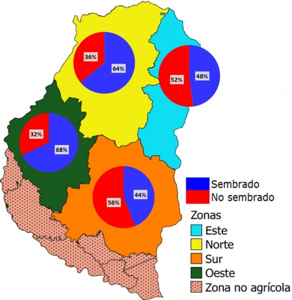 Al día de la fecha, Paraná y Uruguay son los únicos departamentos donde se han destinado lotes para la producción de girasol.