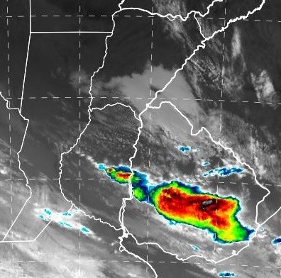 El frente de tormenta que ingresó al territorio en la madrugada del lunes 16 de septiembre y generó la caída de granizo en centro Oeste del departamento Uruguay (Figura 6). No se registró daños en los cultivos implantados.