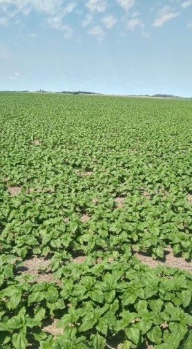 La condición general es buena. Los colaboradores reportan que en algunos sectores de los lotes se observa una menor densidad de plantas (Figura 1) o un desarrollo desparejo.