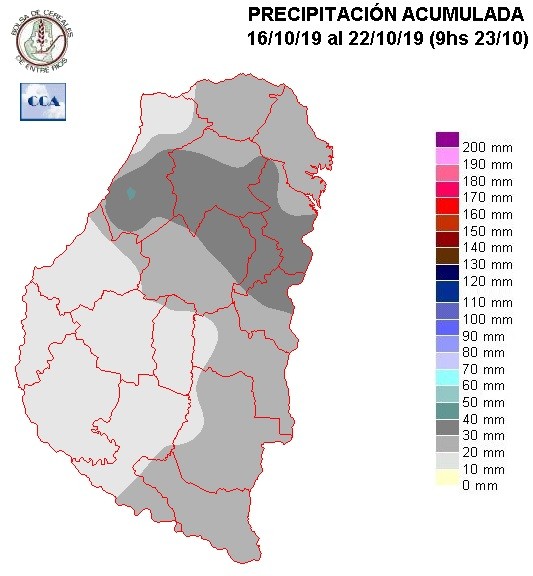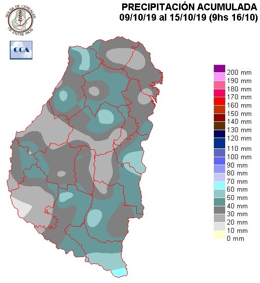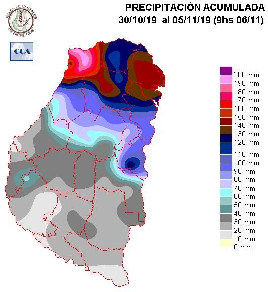 Cambiando del domingo para el lunes, las lluvias descendieron hacia los departamentos del sur, con un comportamiento volumétrico que se puede considerar normal. Dentro de este contexto de sobreoferta de agua, las lluvias fueron algo cortas en áreas de Victoria y Paraná.