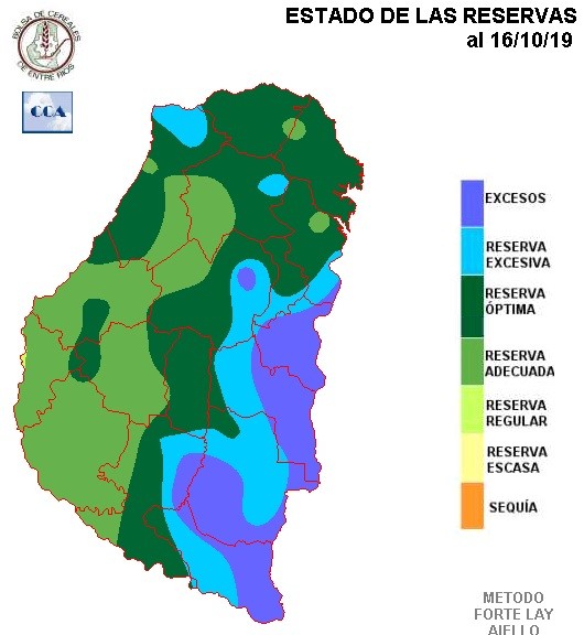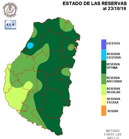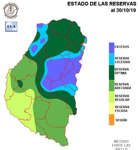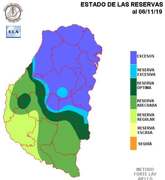 La respuesta del balance a la menor oferta de agua sobre los departamentos del sur de la provincia es evidente, predomina en este sector un nivel de reserva cercano a niveles adecuados, posiblemente con áreas de Victoria donde la condición hídrica se presente más ajustada, más allá de la recuperación superficial que han generado las lluvias del lunes.