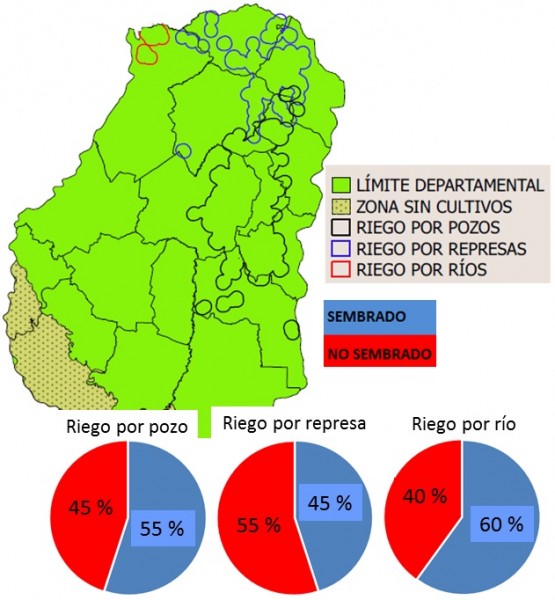Los colaboradores reportan que los productores se encuentran en plena tarea de siembra. Al día de la fecha se estima un avance a nivel provincial que se ubica en el 38 % de la intención de siembra que se sitúa en 750.000 ha aproximadamente.