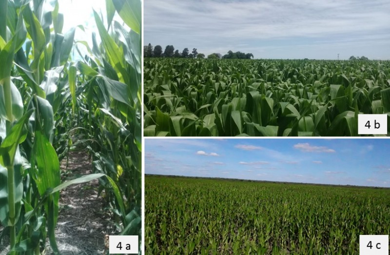 El estado fenológico del maíz se ubica desde V3 (tres hojas desarrolladas) hasta V10 (diez hojas desarrolladas).