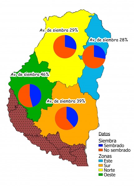 En la Figura 2 se muestra el grado de avance por zonas. Los excesos hídricos han retrasado las tareas de siembra en el centro Norte del territorio. En relación a lo acontecido el año pasado a esta misma fecha, se observa un retraso de 15 puntos porcentuales.