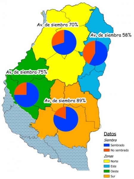 El avance en las labores a nivel provincial se ubica en 78 % de la intención inicial que es alrededor de 750.000 hectáreas.