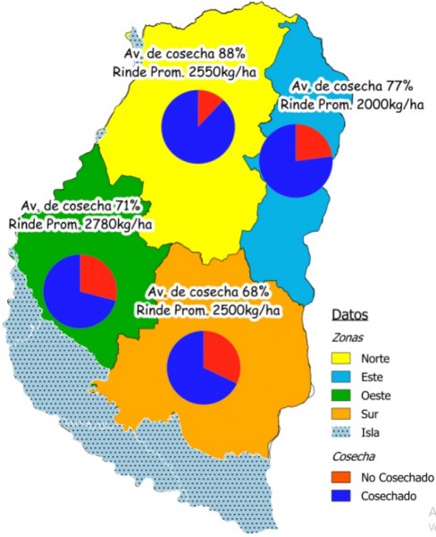 En la Figura 1 se muestra el grado de avance por zona y rendimiento promedio.