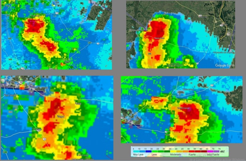 En la Figura 4 tomada del Radar Meteorológico del INTA se pueden vizualizar la intensidad y reflectividad de la tormenta en los departamentos Paraná, Victoria, Diamante y Uruguay.