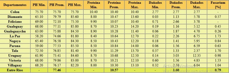 La cosecha de dicho cultivo ha finalizado y proximamente la Bolsa de Cereales de Entre Ríos dará a conocer el Informe Final de Producción.