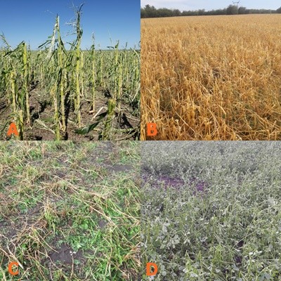 Los colaboradores mencionan que se está evaluando el impacto en la superficie y nivel de daño de los cultivos de maíz, trigo, soja y pasturas. Se publican imágenes sobre el efecto del evento. (Figura 5).