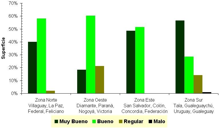 A nivel provincial el 18 % del área posee una condición calificada como muy buena y el 82 % restante como buena.