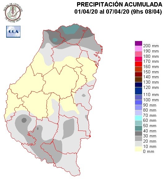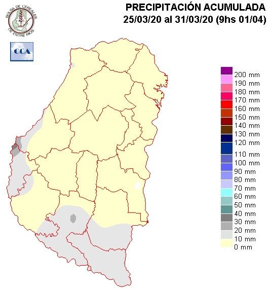 Como se observa en el mapa las primeras lluvias del mes fueron algo más generosas en los departamentos del sur y también en el norte provincial. Sobre la franja central, las precipitaciones en general fueron muy débiles o en forma de lloviznas. Las mismas sumaron apenas algunos milímetros, mayormente inferior a cinco milímetros. Este comportamiento pluvial prácticamente no cambia el comportamiento deficitario que arrastramos desde hace dos meses en la provincia.