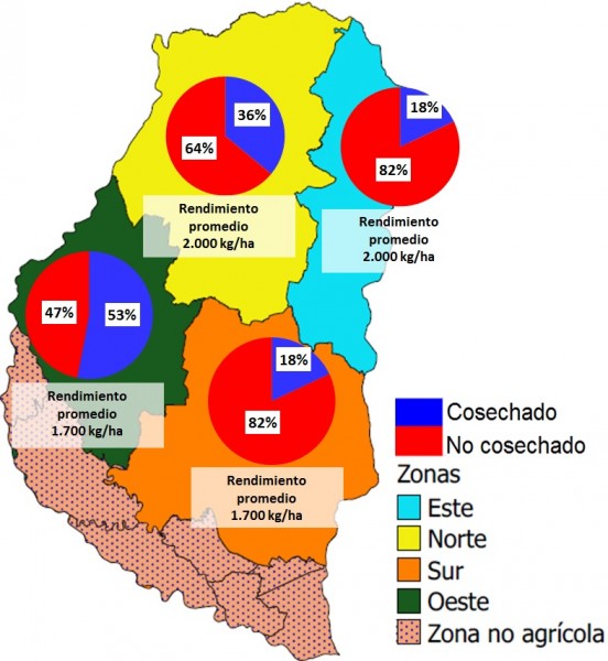 En la Figura 1 se muestra el grado de avance y el rendimiento promedio por zonas.