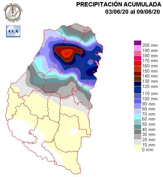 Entendemos que el mes de junio todavía tiene posibilidades para ofrecer mejoras. Es posible que en lo que resta del mes la frecuencia de eventos no sea baja. De esta manera, las zonas más secas del sudoeste, aún pueden aspirar a lograr unos 30 o 35 milímetros, es decir podrían quedar cerca del valor estadístico para la zona, lo cual sería muy oportuno para el incipiente desarrollo de los cultivares de trigo o aquellas parcelas donde aún no se logró implantar el cereal.