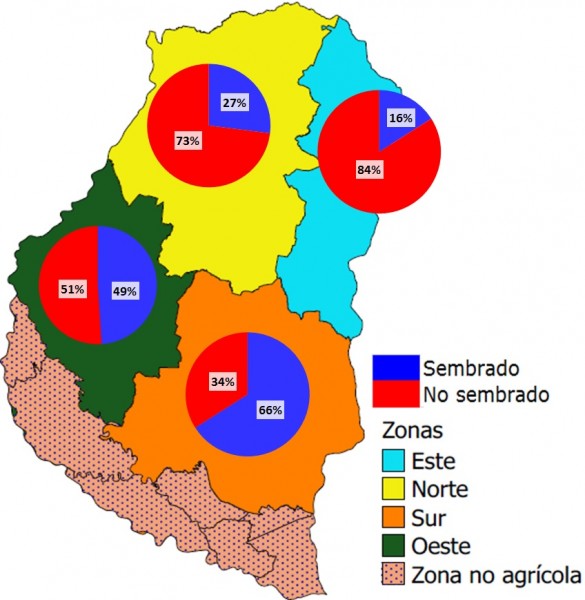 En la Figura 1 se muestra el grado de avance en la siembra de trigo por zonas.