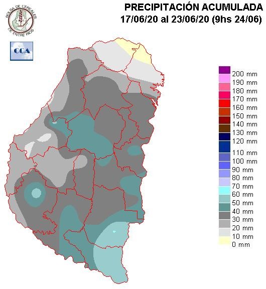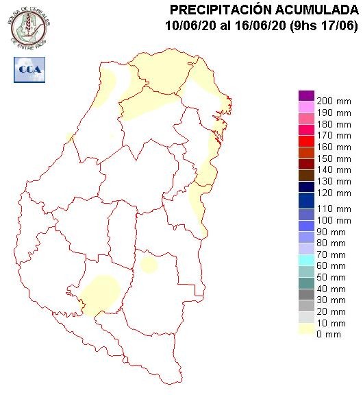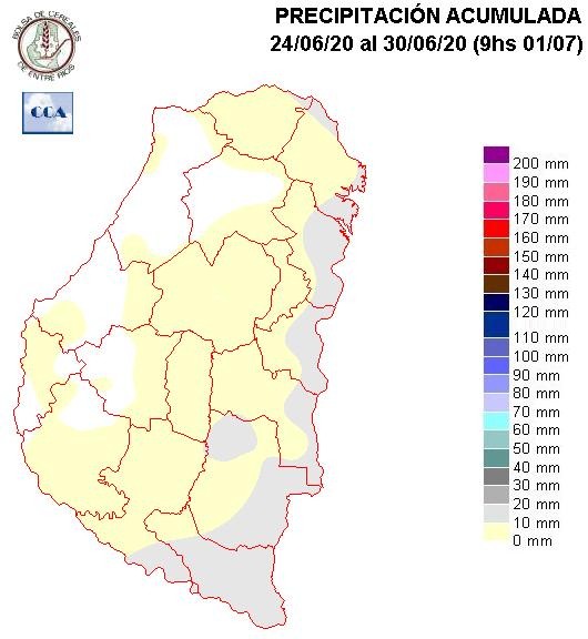 La última semana de junio aparte de presentar tiempo muy frío sobre toda la provincia, se despidió con algunas precipitaciones que tendieron a ser más abundantes sobre el este. Las mismas decrecen de este a oeste desde registros algo superiores a los diez milímetros hasta marcas nulas sobre el oeste, donde pueden haberse observado lloviznas.