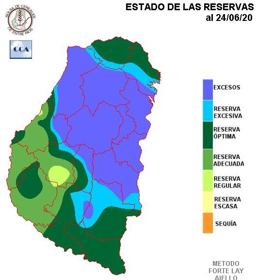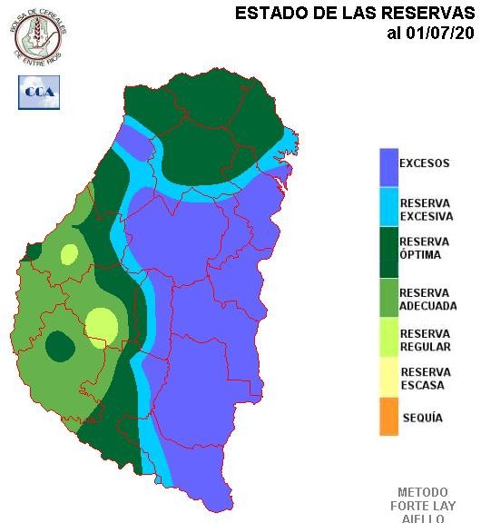 Este arranque más seco del mes de julio favorecerá en forma progresiva la adecuación de los excesos hacia valores normales. En las zona que ya están con reservas adecuadas, posiblemente se vea algún retroceso de humedad superficial, pero no se puede considerar desfavorable este comienzo de julio. La bisagra para el inicio de la fina sin duda se ha dado con las lluvias que se observaron entre el miércoles 17 y el jueves 18, sin aquel evento que oportunamente incluyó al sudoeste provincial, hoy estaríamos comentando un paso mucho más exigido de las reservas, habiendo apenas iniciado el recorrido de la fina.