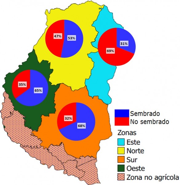 – Escasas precipitaciones durante el otoño e invierno, fundamentalmente en el sector Oeste, lo cual equivale a disponer inicialmente con menores reservas hídricas en el perfil.