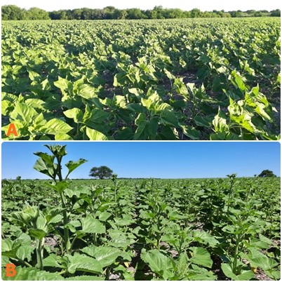 El girasol implantado en Entre Ríos abarca alrededor de 6.000 ha en el ciclo 2020/21. El estado fenológico que oscila entre V7 (siete pares de hojas desplegadas) a V10 (diez pares de hojas desplegadas). Figura 5.