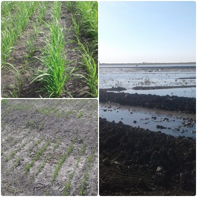 Los coloboradores destacaron que las bajas marcas térmicas asociadas a la baja temperatura del agua de riego retrasaron la emergemencia de los lotes en los cuales fue necesario iniciar con baños anticipados. Se detectan: emergencias desparejas y necesidad de resiembras. Es muy generalizada la heterogeneidad en el tamaño de las plantas dentro de los lotes .