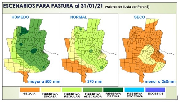 Entendemos que no se puede proyectar el próximo bimestre bajo un escenario climático totalmente distinto al presente. Lo más probable es que continuemos con deficiencias pluviales, las cuales alternarán con mejoras temporarias. Pueden aparecer sorpresas, pero las mismas no pueden ser tenidas en cuenta a la hora de definir estrategias de manejo.