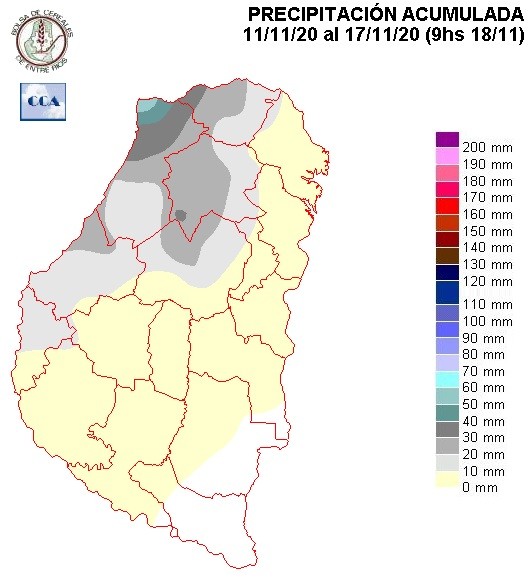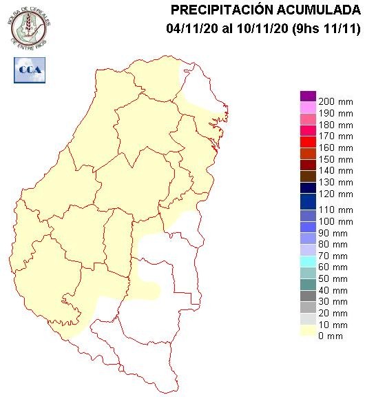 Como venimos anticipando, sólo resta esperar que se cumpla el patrón que se viene repitiendo desde agosto. El mismo ha instalado una baja frecuencia de eventos pluviales significativos. Noviembre todavía no ha tenido el suyo y posiblemente no se lo vea antes del miércoles o jueves de la semana próxima. Como sea esta baja frecuencia de eventos pluviales atenta contra el normal desarrollo de los cultivos y así es difícil correrse de escenarios donde el estrés hídrico y en muchos casos la sequía, se vuelven persistentes.
