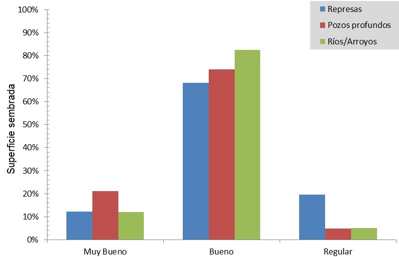 Un hecho a destacar es que, gracias a las abundantes precipitaciones, las represas cuentan con aproximadamente el 90 % de su capacidad y por lo tanto, se logrará cubrir la demanda del cultivo sin restricciones.