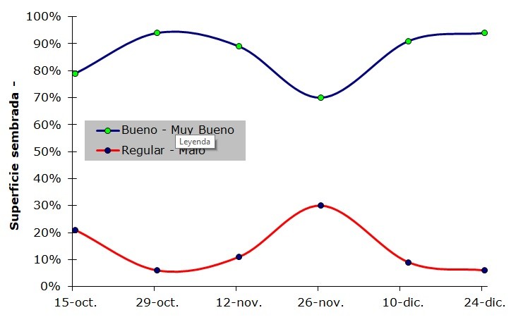 En la Figura 2 se muestra la evolución de la condición del cultivo a nivel provincial. Se puede apreciar que la misma se mantiene constante en referencia a la última evaluación realizada el 10 de diciembre.