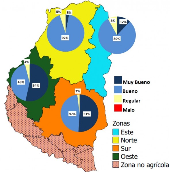 En la Figura 1 se muestra la condición general del trigo por zonas en la provincia de Entre Ríos.