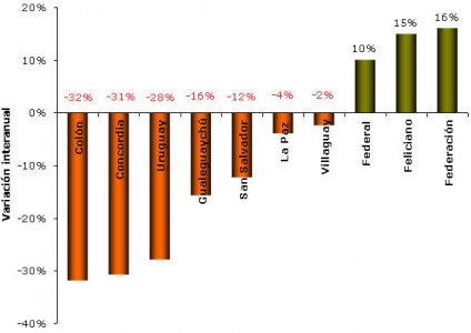 Por otra parte, las caídas más drásticas en se evidenciaron en Colón, Concordia y Uruguay con una disminución que osciló alrededor del 30%.