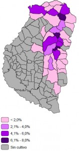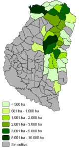 La importancia del cultivo en relación al área correspondiente a cada distrito se expresa a través del Mapa 2.