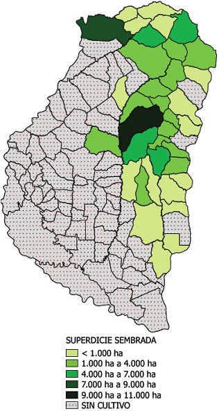 Estos 6 distritos abarcan un total de 37.000 ha, lo cual representa aproximadamente el 50% del total cultivado.