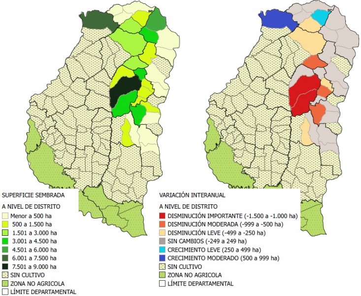 – 2 distritos tuvieron una disminución importante (caída del área entre 1.500 a 1.000 ha).