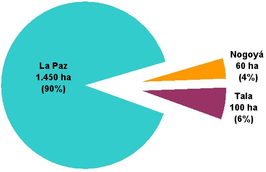 En tan solo tres departamentos se detectaron lotes implantados, concentrándose el 90% de la superficie en la Paz y el 10% restante se distribuyó entre Tala y Nogoyá, ver Gráfico Nro. 2.