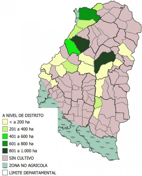 En estos tres distritos se concentró el 41 % (2.400 ha) del área total implantada.