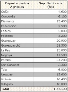 El Sistema de Información Agrícola perteneciente a la Bolsa de Cereales de Entre Ríos ha elaborado el informe sobre el área sembrada con maíz de 1era para la provincia de Entre Ríos correspondiente a la campaña 2013/14.