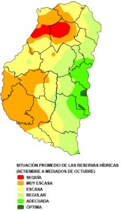 El Mapa 1 muestra la situación promedio de las reservas hídricas durante la fecha óptima de siembra del maíz de 1era. Tal como puede apreciarse los sectores noroeste y suroeste tuvieron un escenario de reservas muy escasas a una situación de sequía, mientras que hacia el este del territorio permanecieron en niveles regulares a óptimas.