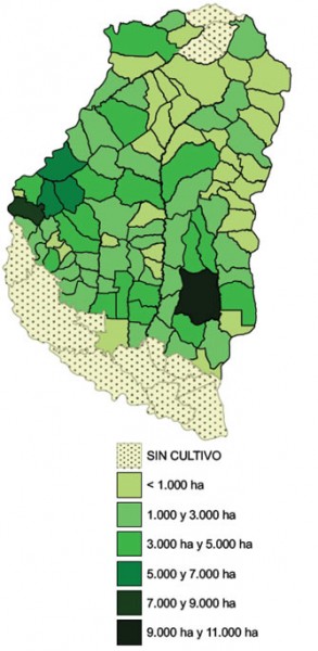 Estos 5 distritos abarcan aproximadamente el 20% del total implantado, lo que representa alrededor de 37.500 ha.