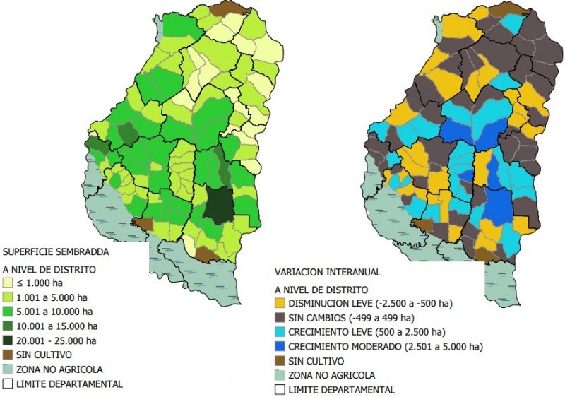 SUPERFICIE SEMBRADA Y VARIACIÓN INTERANUAL A NIVEL DE DISTRITO