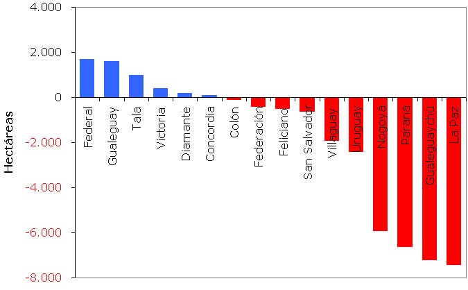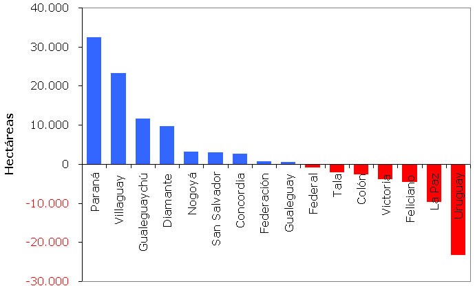Los departamentos Paraná y Villaguay no tuvieron impedimentos importantes por lo cual lograron incrementar su área con respecto al año pasado, ver Gráfico Nro. 3.