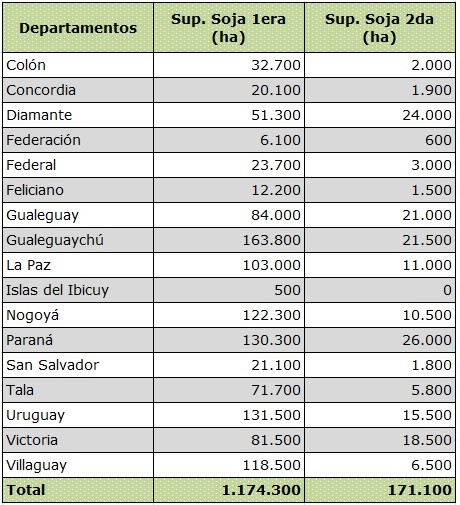 EVOLUCIÓN DEL ÁREA SEMBRADA CON SOJA EN ENTRE RÍOS