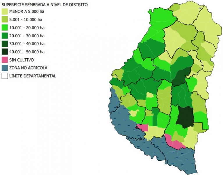 – 29 distritos tuvieron una superficie sembrada entre el rango inferior a las 5.000 ha