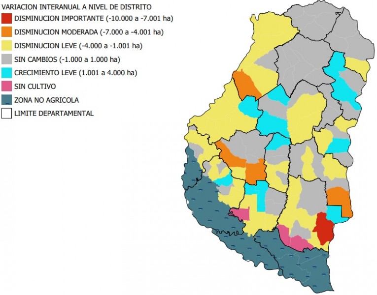 – 1 distrito tuvo una disminución importante (– 10.000 a -7.001 ha).
