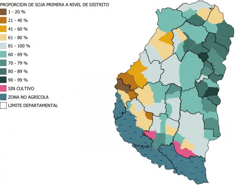 – 2 distritos poseen una participación de soja de primera entre el 90 al 99 %
