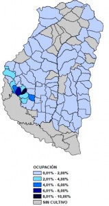 La máxima ocupación le correspondió al distrito Quebrachitos (Dpto. Victoria) en donde la oleaginosa abarcó entre el 8% y el 10% del área total del distrito.