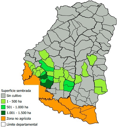 Los distritos con mayor cantidad de hectáreas sembradas fueron: Corrales y Rincón de Nogoyá con un área que se posicionó entre 1.001 a 1.500 ha.