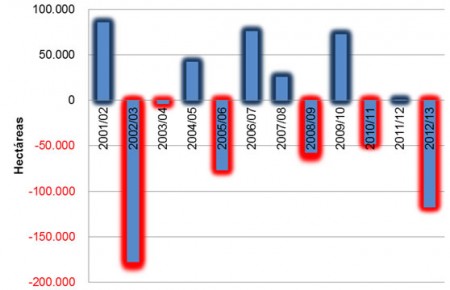 Desde los meses previos al inicio de la siembra del cereal se detectaba por parte de los agricultores un fuerte desánimo hacia la producción de trigo (la causa estaba directamente relacionada con los problemas de comercialización sufridos en las últimas campañas); este hecho finalmente se concretó y ha dejado como consecuencia la menor superficie implantada de los últimos 13 años.