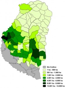 Los distritos Espinillo (Dpto. Paraná) y Pehuajó al Norte (Dpto. Gualeguaychú) ocupan la segunda posición con un área cultivada entre 6.000 ha y 8.000 ha.