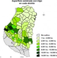 El Mapa 1 presenta la superficie de trigo a nivel de distrito, clasificados en 8 categorías.