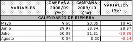 Durante la segunda quincena de mayo comienza a implantarse el cereal en la provincia con una intención que, en ese momento se posicionaba de 15 a 20 puntos porcentuales por debajo de la campaña 2008/09.